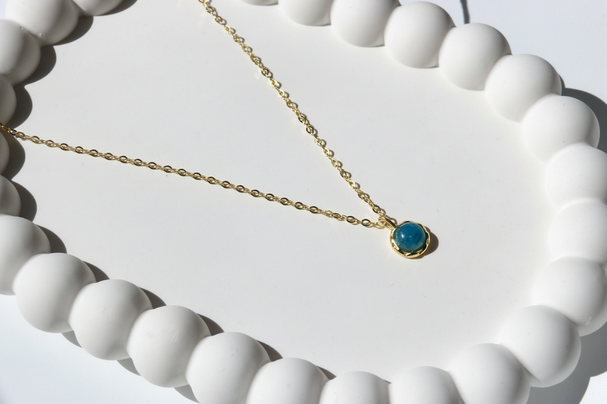 Ce magnifique collier en argent S925, plaqué or, rehaussé d'un élégant cabochon d'apatite de 0,6 cm de diamètre, est une pièce qui saura sublimer n'importe quelle tenue. Avec une longueur de chaîne de 50 cm, incluant 4 cm d'extension pour un ajustement parfait, sa fermeture par fermoir assure un port confortable et sécurisé. Les photos sont contractuelles, permettant ainsi de visualiser toute la beauté et l'éclat de ce collier. Un accessoire raffiné et intemporel qui ne manquera pas de faire sensation à chaque fois que vous le porterez.