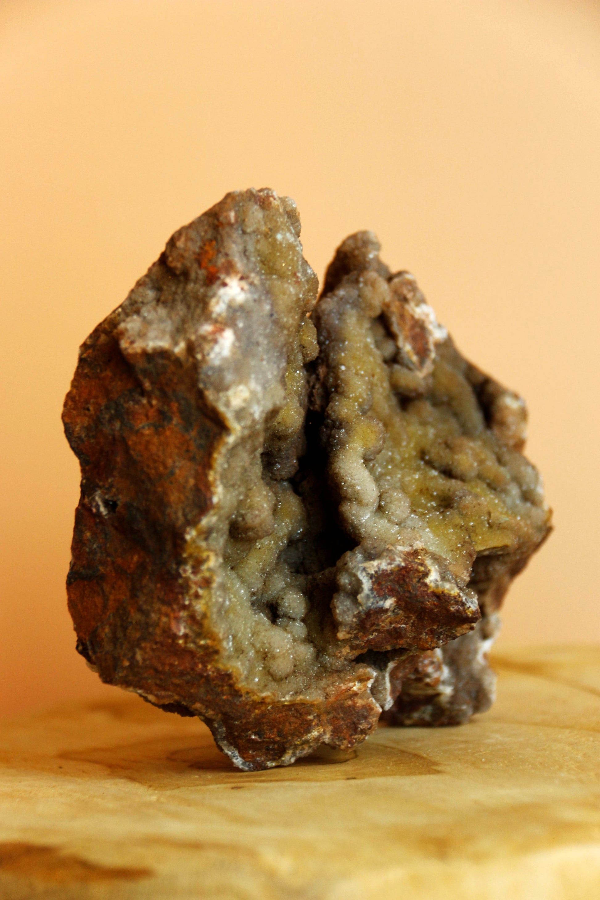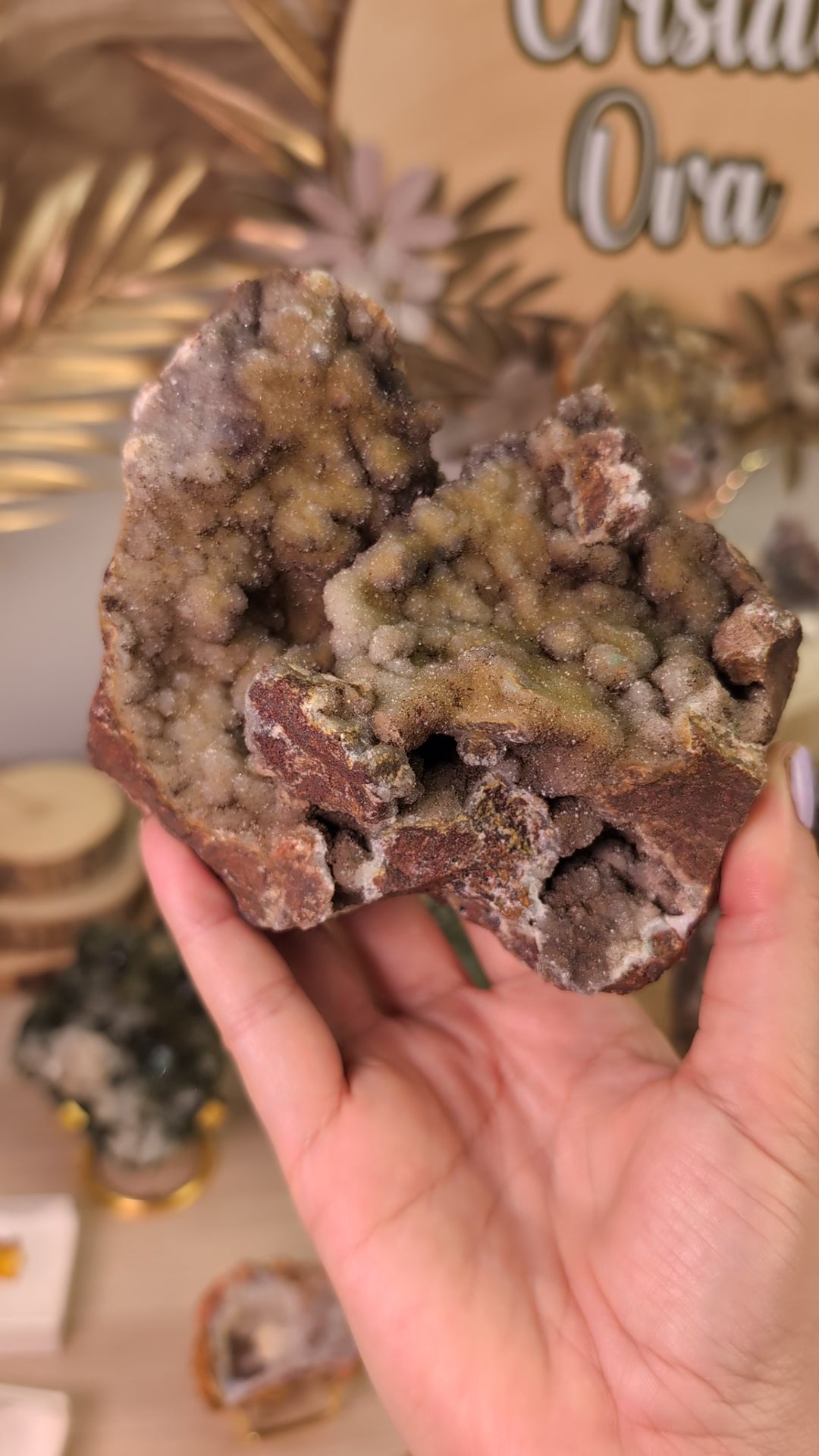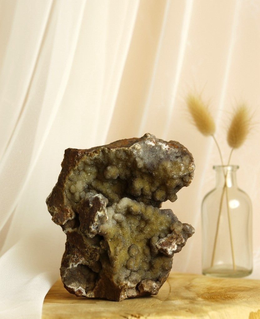 Avantage majeur : Cette calcédoine tient naturellement debout sans socle ! Sa stabilité naturelle vous permet de l'installer directement sur votre bureau, étagère ou autel sans accessoire supplémentaire.
