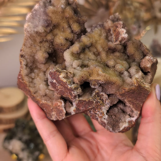 Ses 11 cm de largeur et 9 cm de hauteur offrent une présence remarquable tout en restant harmonieuse. La beauté de cette pierre réside dans son authenticité brute et ses formations naturelles qui témoignent de nombreuses années de cristallisation.