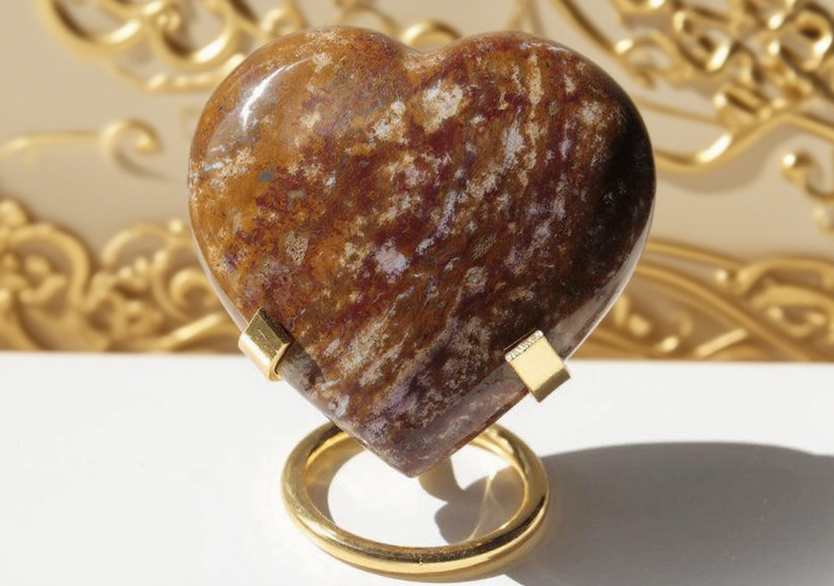 Magnifique cœur taillé dans un authentique jaspe océan de Madagascar. Cette pierre aux nuances apaisantes évoque les vagues et les remous marins, créant des motifs uniques et hypnotisants. Sa forme symbolique en fait un objet décoratif précieux autant qu'un support de bien-être en lithothérapie.