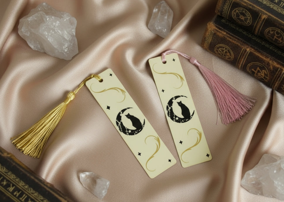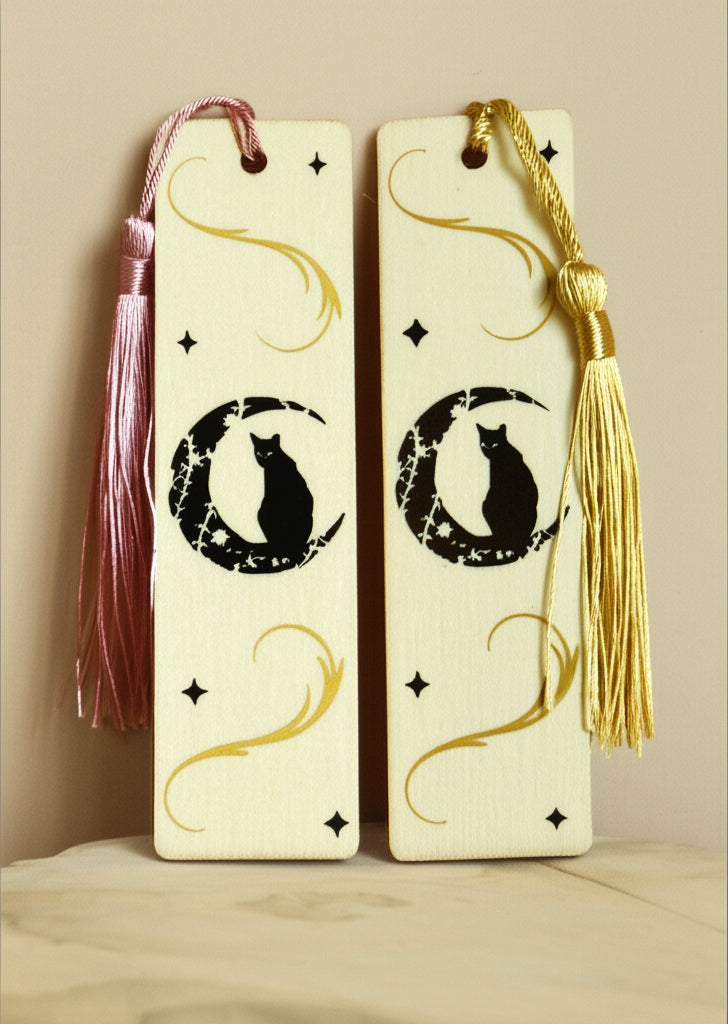 Plongez dans l'univers enchanteur de la lecture avec nos Marque-Pages chat des Étoiles, ces adorables accessoires artisanaux en bois qui transforment chaque pause lecture en moment magique. Ornés d'un motif mystique représentant un chat élégant perché sur un croissant de lune étoilé, ils allient fonctionnalité et poésie pour accompagner vos aventures littéraires.