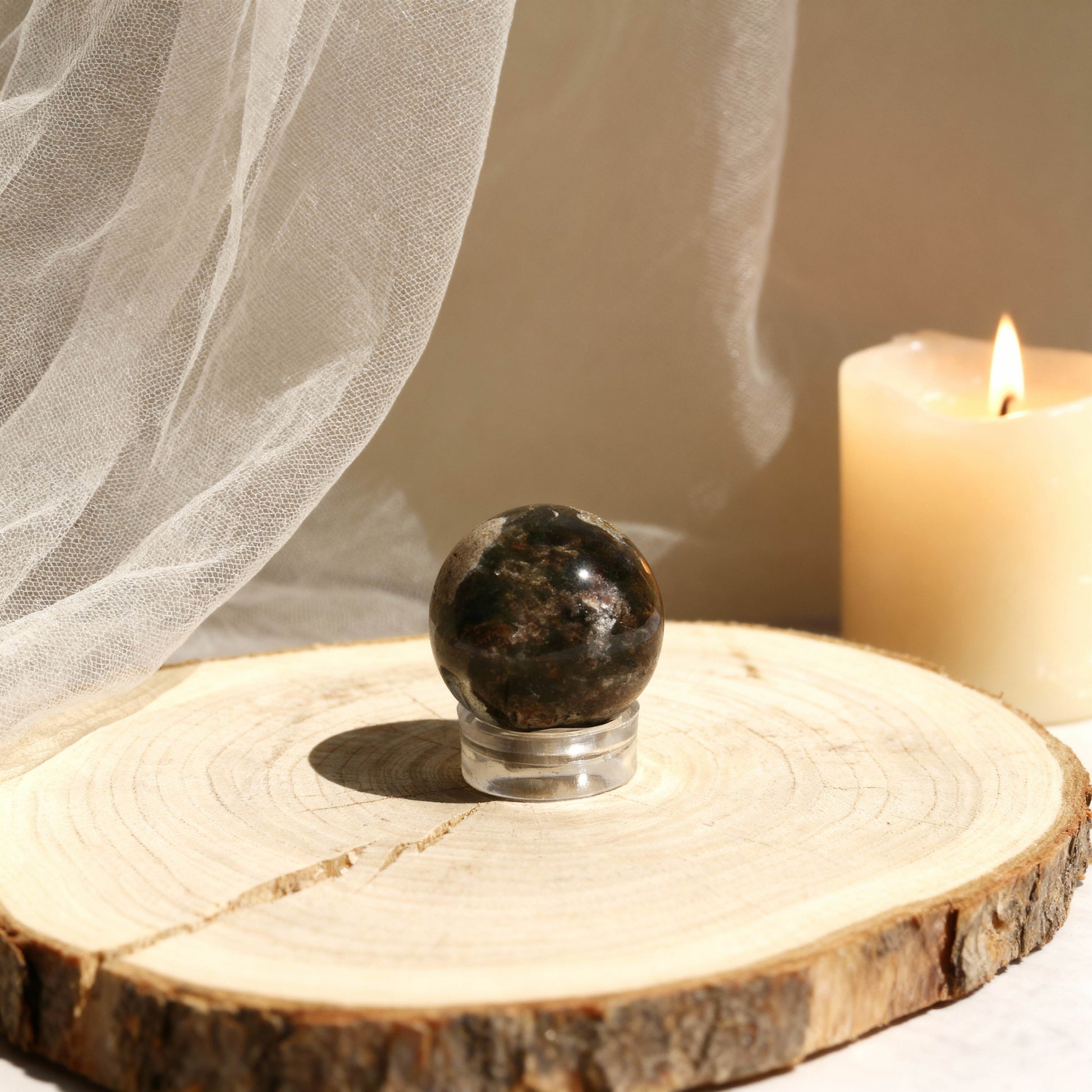 Le quartz lodolite aussi appelé "quartz jardin" de ses inclusions naturelles qui évoquent des paysages miniatures, des jardins zen ou des forêts enchantées figées dans le temps. Chaque sphère raconte une histoire géologique unique, offrant un spectacle hypnotique à chaque regard.