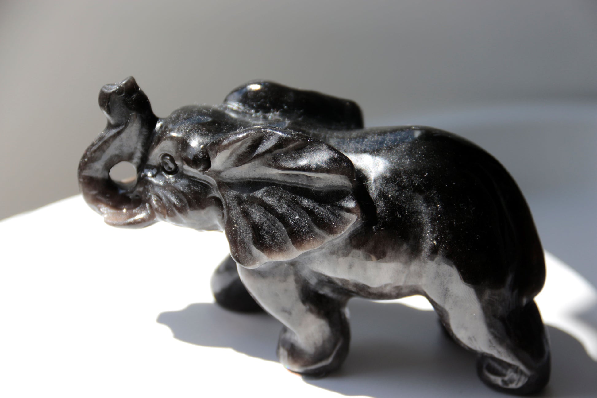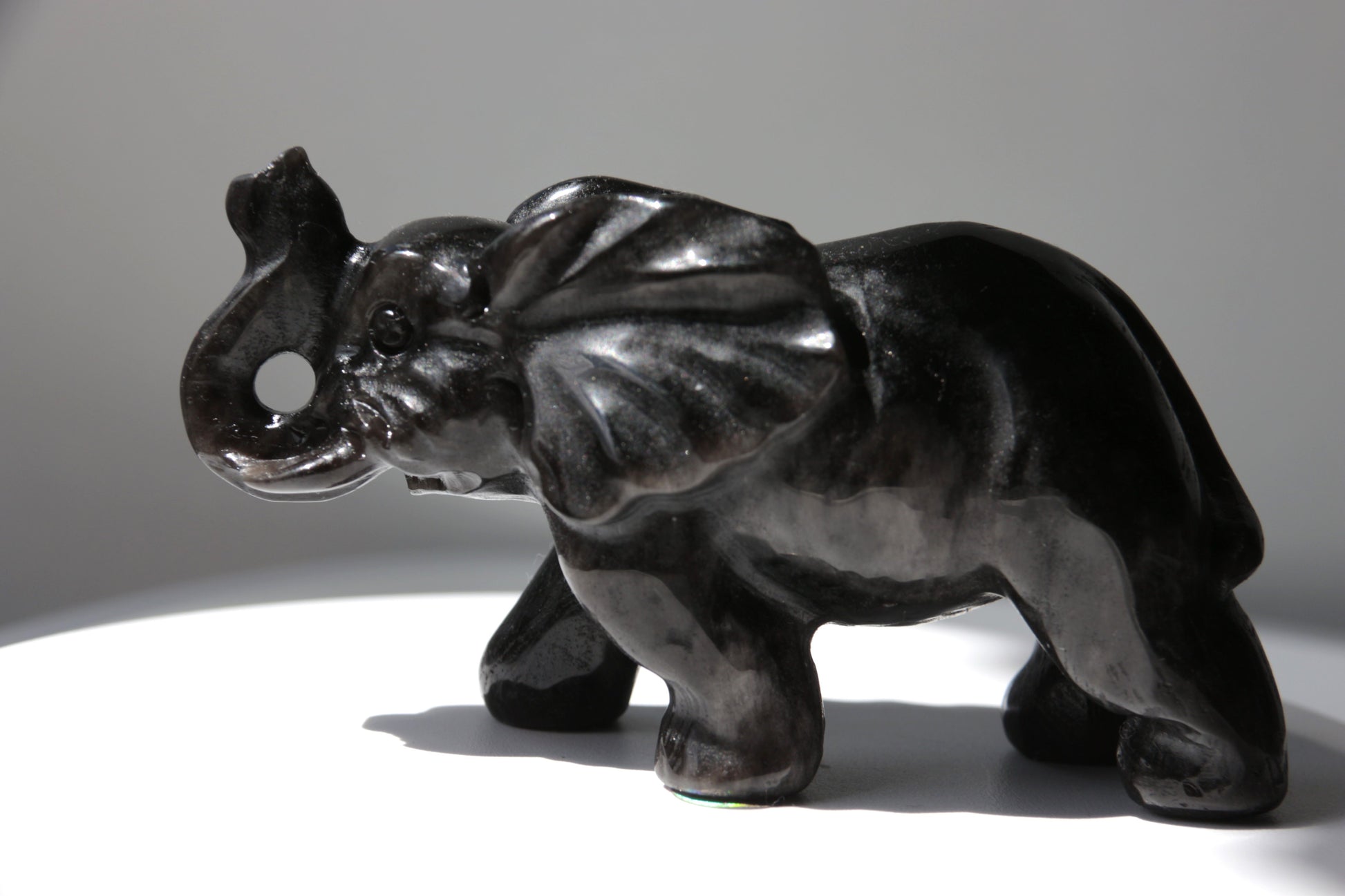 Apportez une touche d'énergie et d'élégance à votre intérieur avec notre éléphant sculpté en obsidienne argentée. Les jolis détails de cette pièce de 175g, mesurant 10 cm x 5,1 cm, en font un objet unique et un porte-bonheur. Faites entrer la puissance de l'obsidienne dans votre vie avec cet éléphant inspirant !