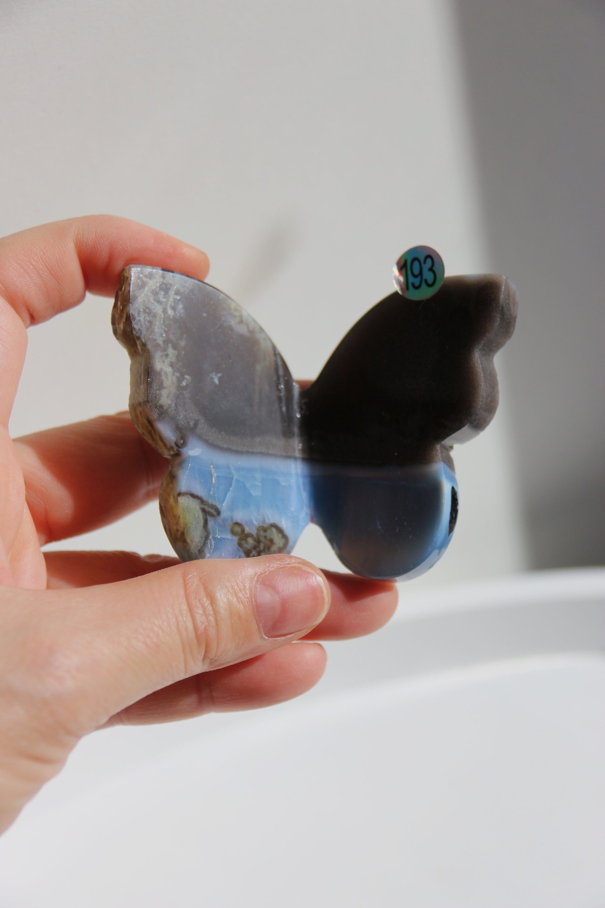 Plongez dans la sérénité avec nos papillons uniques en opale bleue d’Owyhee.