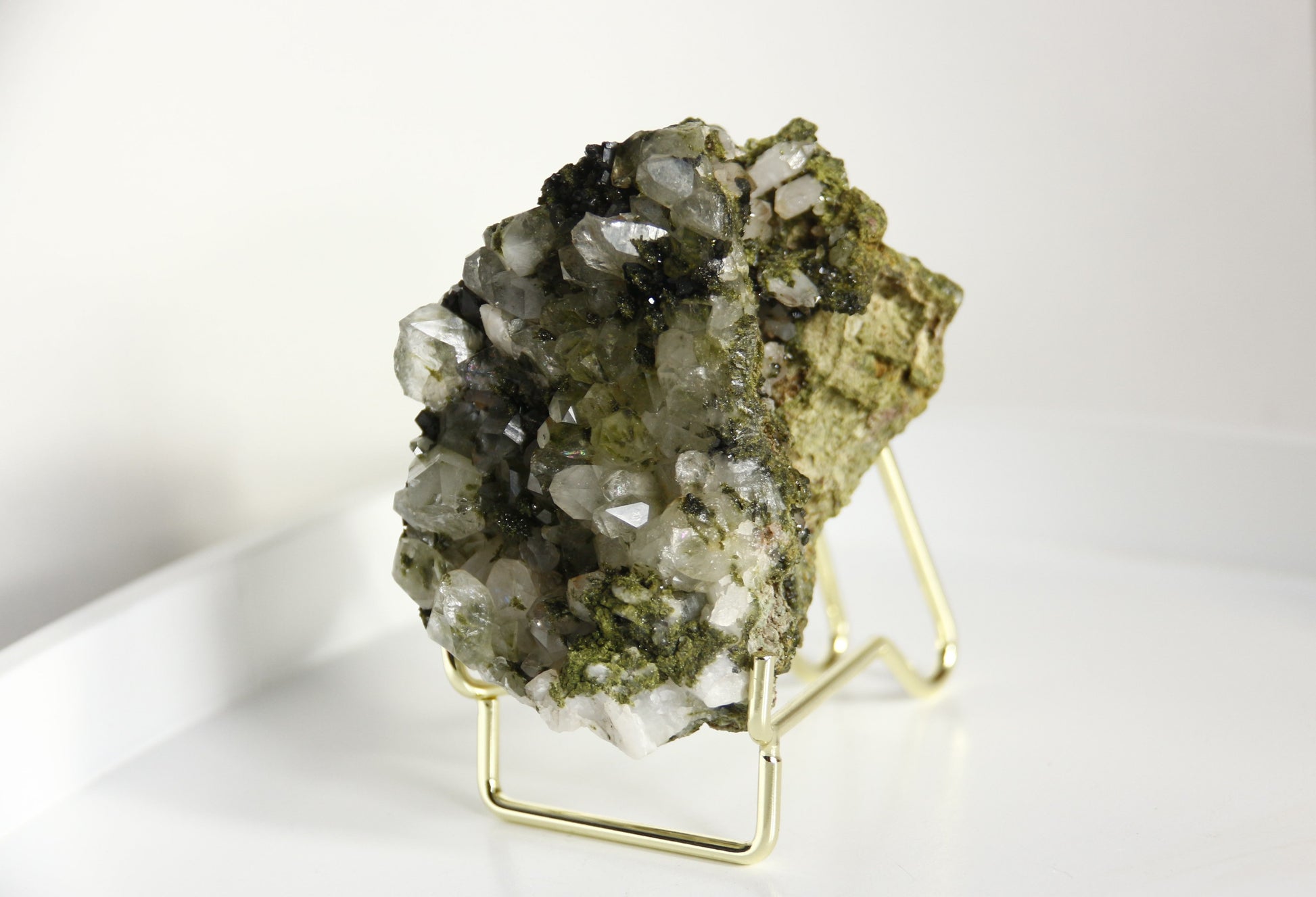 💡 Mise en valeur : Placez-le sur un support lumineux pour admirer la transparence du quartz et les inclusions d’épidote sous différents angles.